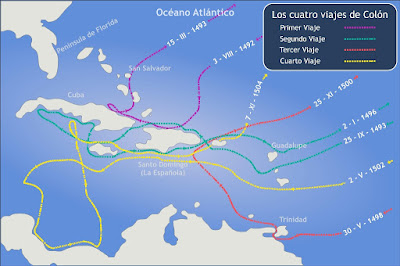 *La llegada a América de Cristóbal Colón amplió los horizontes geográficos hasta entonces conocidos y sentó las bases del futuro Imperio español en América.